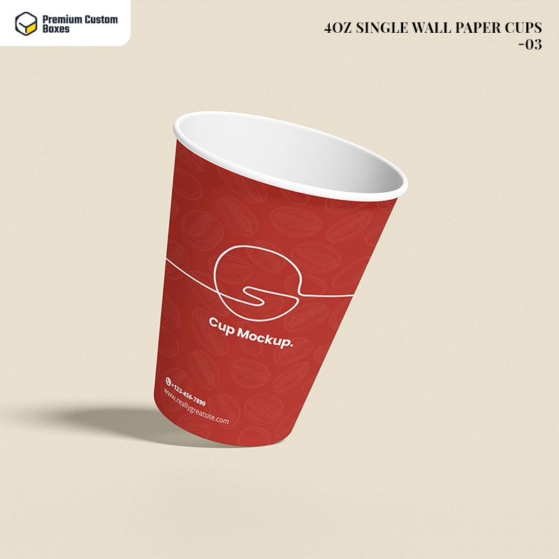 Are you a cafe or an event organizer that struggles with serving customers and guests? Then worry not. Premium Custom Boxes will help you in this, as our company manufactures custom 4oz single wall paper cups that maintain the temperature of your hot or cold beverages and offer a quick service environment. Moreover, our company also customizes these cups with eye-catching designs, branding elements, and some add-ons that differentiate your products from your competitors. We also offer different lid styles that make a comfy drinking experience and deliver a unique brand impression on customers' minds. You can get these customized single wall paper cups at wholesale prices, and you can even get discounts by ordering them in bulk. Contact Us Now!