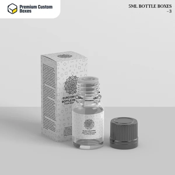 5ml bottle boxes are packaging solutions designed for the protection of fragile items. These containers also help in creating brand awareness with their different customization options. They are commonly used for products like pharmaceutical samples. Our packaging provides space for important information such as usage instructions or safety warnings.