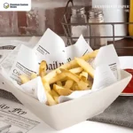 Customized fry paper is a kind of greaseproof paper that is made from food-grade paper base material to serve fatty food items. This paper can also be used for several purposes, such as a food basket liner, sandwich wraps, etc. The best thing about this paper is that it is made from softwood fibers and is sustainable. Despite being paper-based, it has the ability to prevent oil penetration, and you do not need to rely on plastic films.
