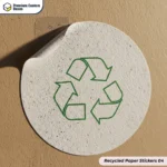 The material for custom recycled stickers is processed to give it printability and a smooth surface. The final ticker remains recyclable in most of the paper waste streams.