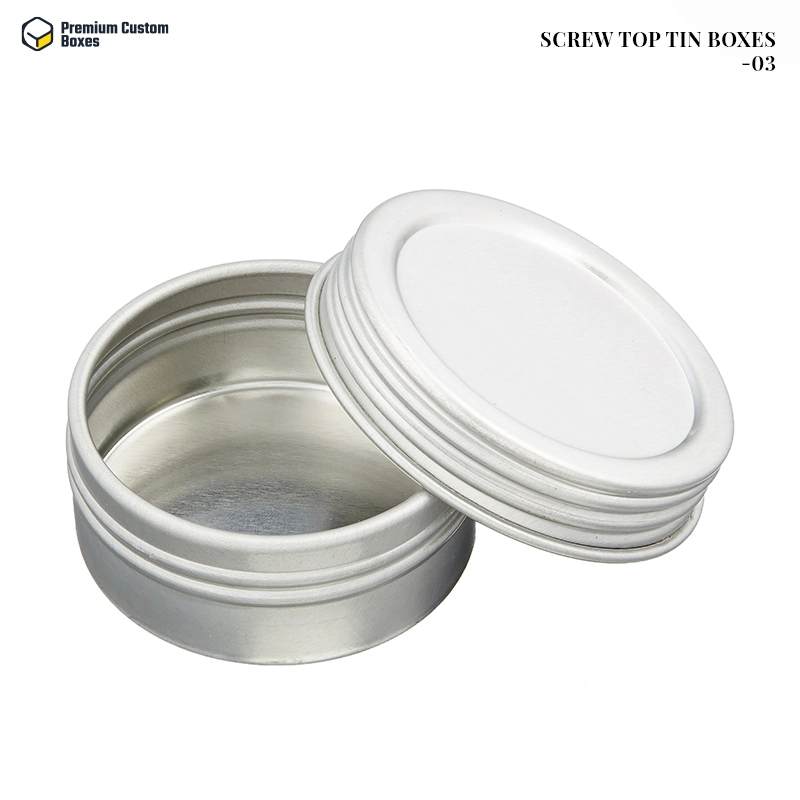 Screw top tin boxes are a versatile packaging solution for all types of brands that struggle to get protective packaging to maintain their delicate product quality and freshness. Premium Custom Boxes manufactures these boxes to give products from cosmetics to candles and from food to hardware. These boxes provide an airtight packaging that protects them from harsh environments and harmful substances that cause food to become soggy or contaminated.